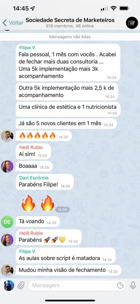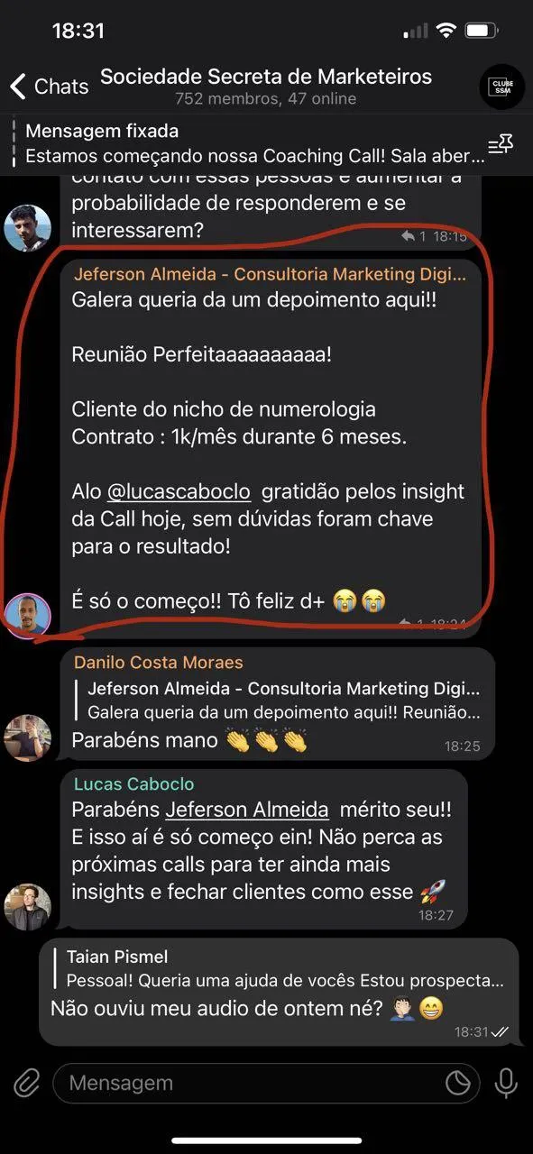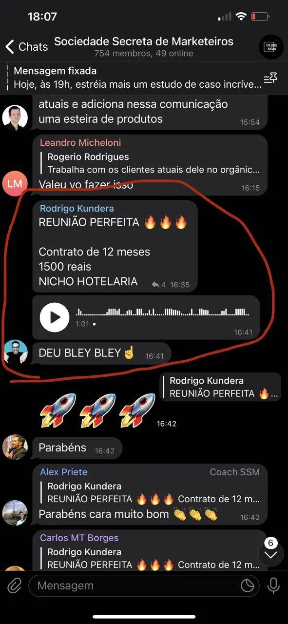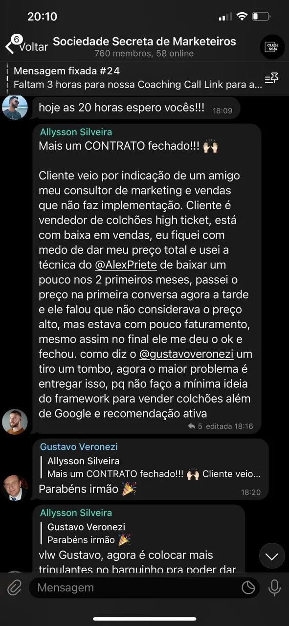 Encontros de Mastermind com outros profissionais e donos de agencias de Marketing Digital que estão jogando jogos parecidos ou maiores que o seu.