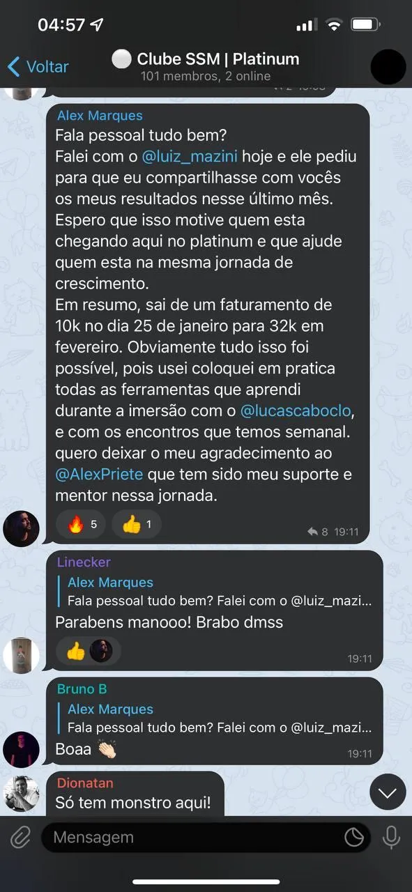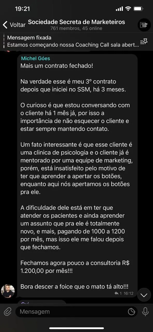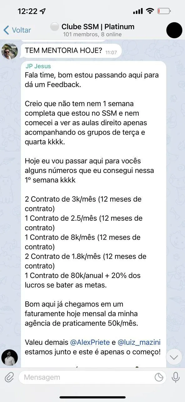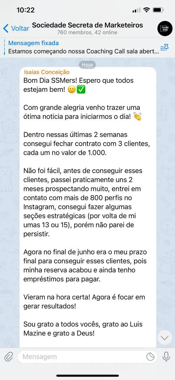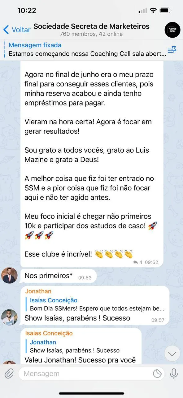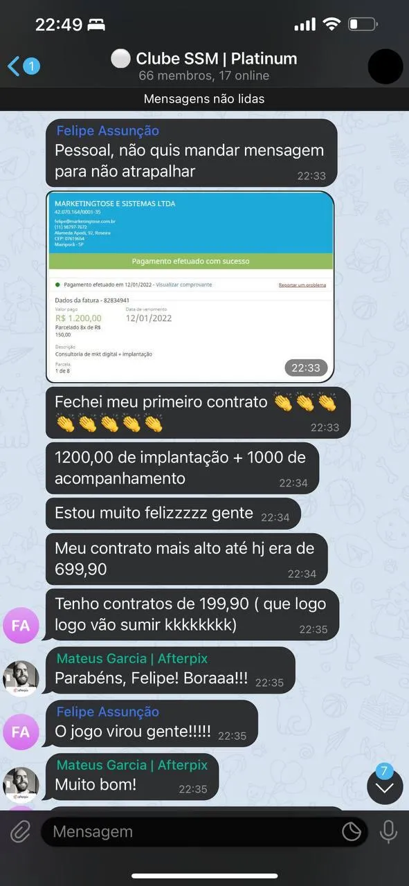 No Clube SSM também temos acompanhamentos individuais, para te ajudar a encurtar o processo de crescimento do seu negócio, onde te mostramos apenas o que você precisa para o seu momento, sem a necessidade que você fique perdido com a quantidade de Treinamentos e Processos que temos dentro do Clube.